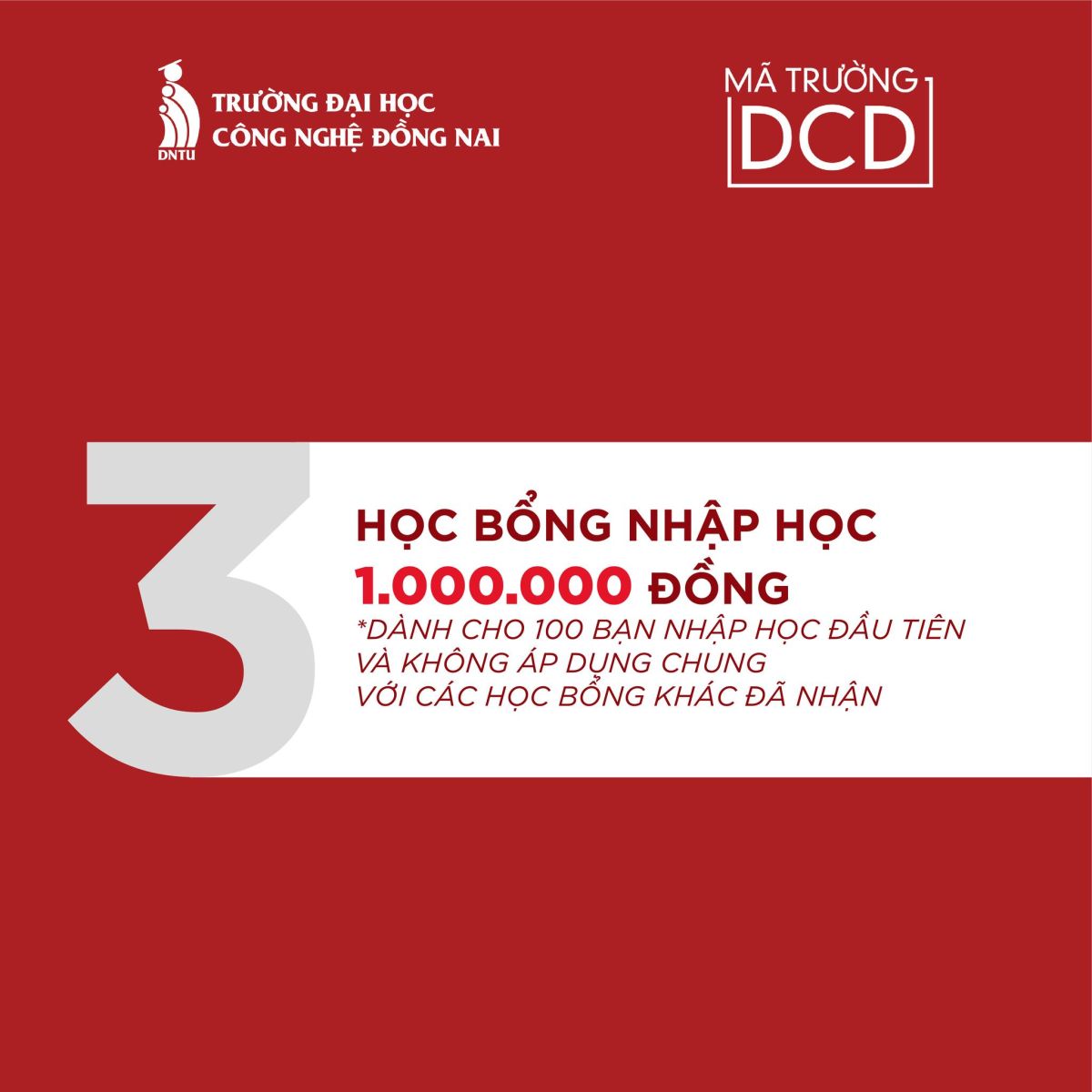 Học bổng: Có vô vàn học bổng “khủng” dành cho tân sinh viên. Trong đó, DNTU dành tặng 100 suất học bổng 1.000.000 đồng cho các bạn nhập học sớm nhất.