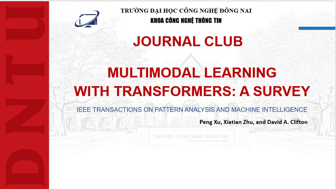 Ngày 17/11/2024 Giảng viên Khoa Công nghệ thông tin đã cùng tìm hiểu và chia sẻ học thuật Journal Cub bài “RMultimodal Learning With Transformers: A Survey” của tác giả Peng Xu, Xiatian Zhu, and David A. Clifton – Đăng trên tạp chí: IEEE Xplore. Bài báo được công bố vào tháng 10/2023.