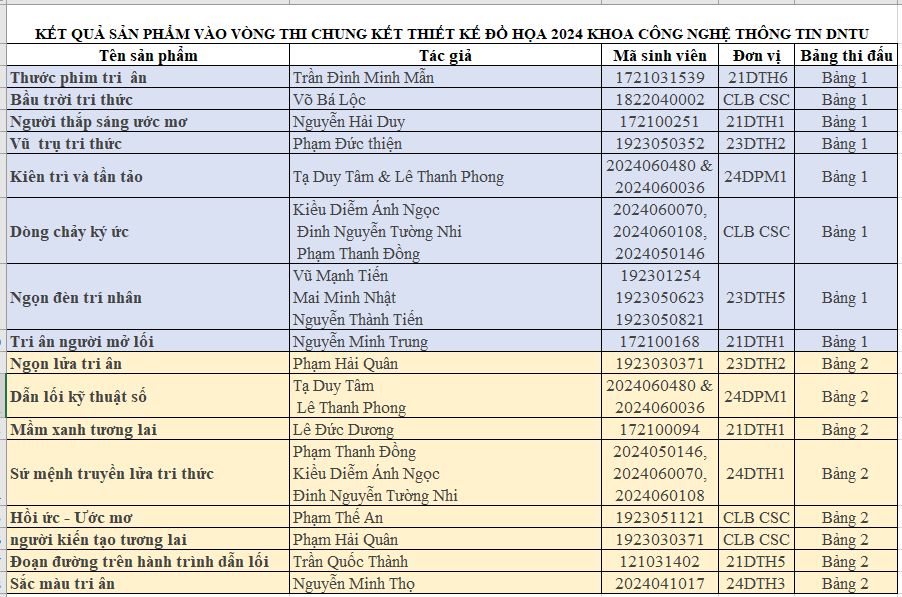 Ban tổ chức cuộc thi thiết kế đồ họa Khoa Công nghệ Thông tin hân hạnh giới thiệu danh sách 16 tác phẩm xuất sắc nhất đã lọt vào vòng chung kết. Mỗi tác phẩm là một dấu ấn sáng tạo riêng biệt, thể hiện sự nhiệt huyết, tài năng và khả năng ứng dụng công nghệ của các bạn sinh viên.
