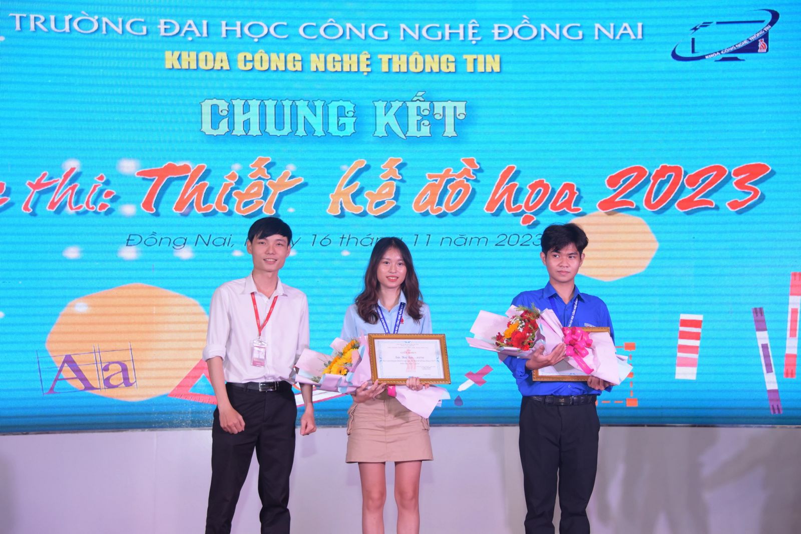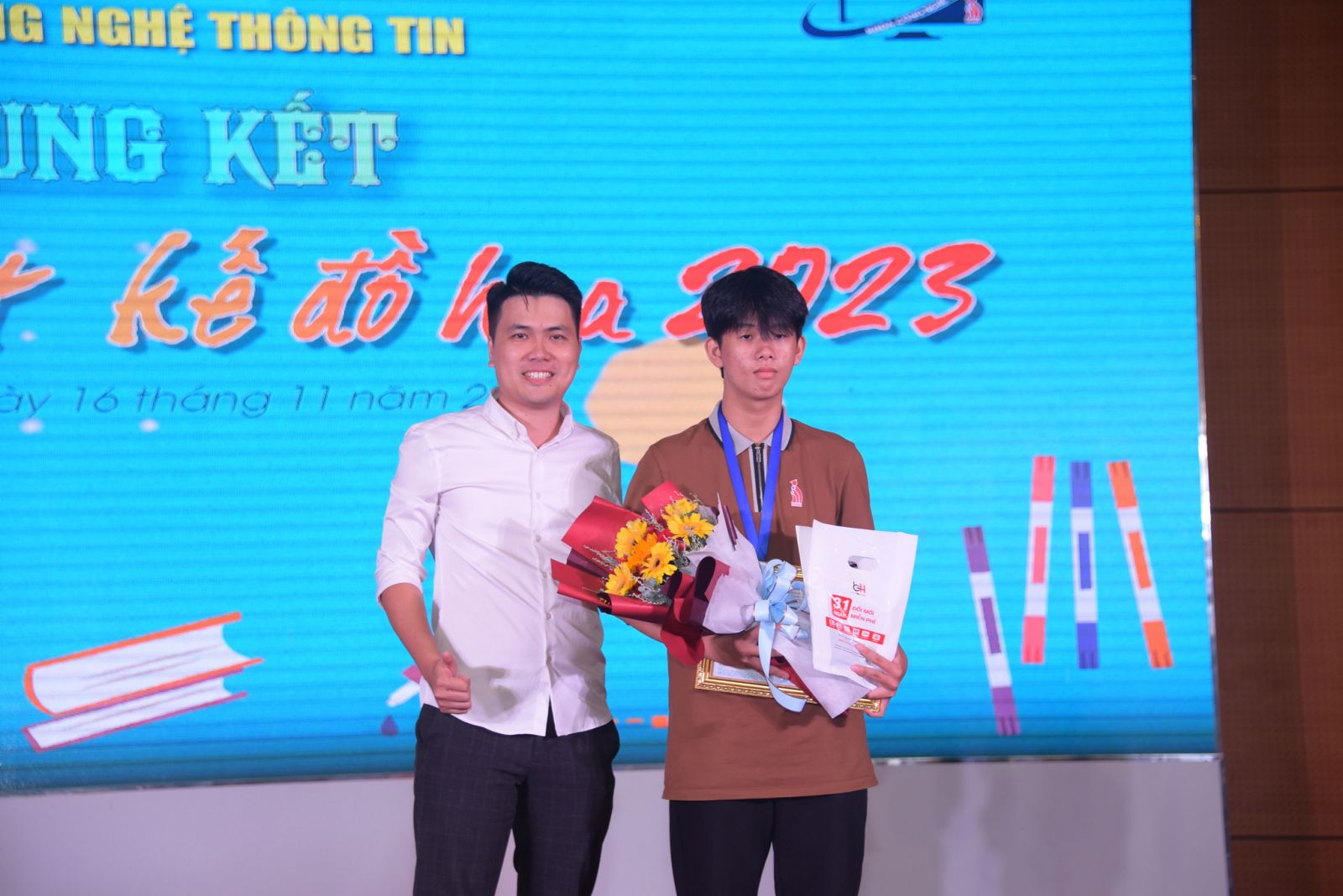 Giải khuyến khích: Ngọn Đèn Tri Thức : Sáng Soi Tương Lai của lớp 21DTH5 do bạn Lê Nguyễn Khánh Vi báo cáo và tác phẩm Khoảng khắc thân quen của lớp 23DTH2 do bạn Trần Thoại Quân báo cáo.